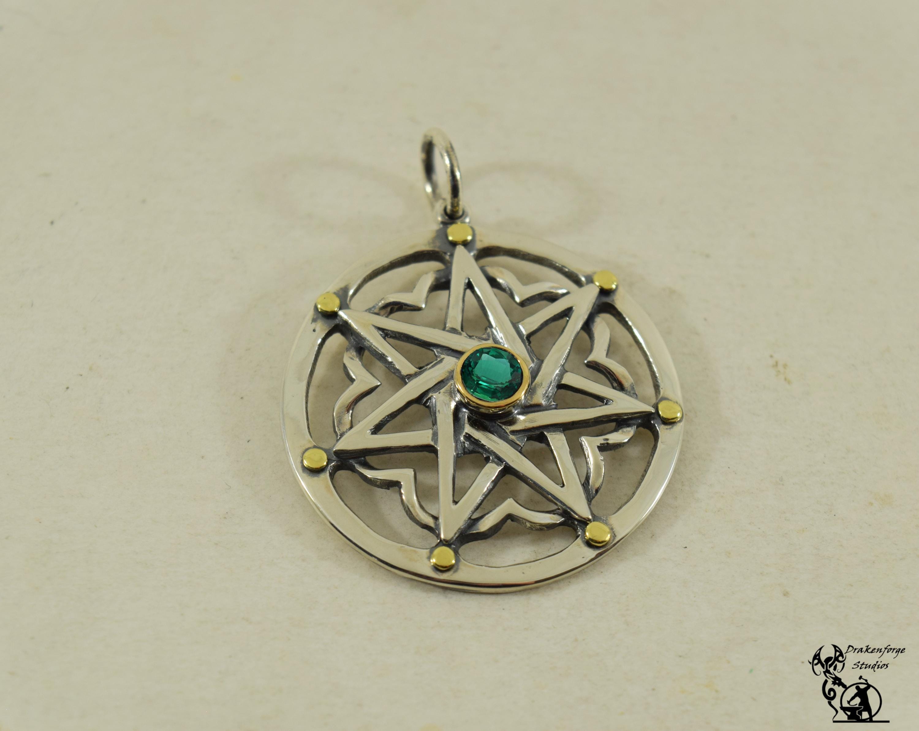 I am trying something new with the Gemstone selections available for this piece. This listing is for the basic pendant without gemstones. In either all silver or mixed metals, the basic pendant displays seven rivets at each point of the Elven Star. Rivets can be replaced with 2mm round cut gemstones and/or a larger 5mm round cut stone can be mounted in the center of the pentacle.
