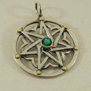 This 1.2 inch pendant features a 5mm bezel set faceted stone or no stone setting. Availability of stones changes occasionally. You can also opt to have the pendant permanently soldered onto a 3.2mm rolo chain as a necklace which includes 16, 18, or 20 inch chain.